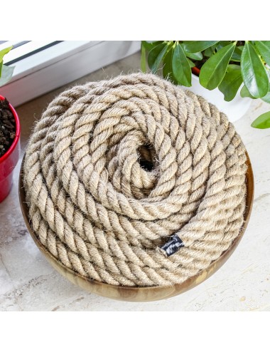 3-strängiges gedrehtes Juteseil aus natürlichem Jutegarn mit einer Beimischung von Öl, was die Herstellung erleichtert und die Eigenschaften des Seils verbessert