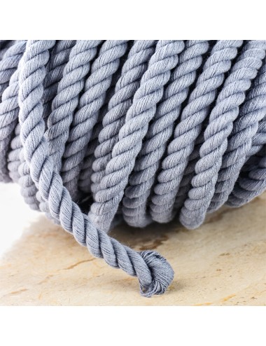 Corde en coton, 3 brins, torsadée, en fil de coton fin et naturel teinté en gris