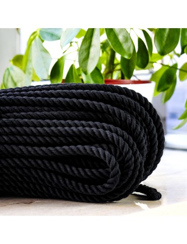 corde en coton, à 3 âmes, torsadée, en fil de coton fin teinté en noir