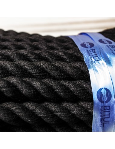 corda di cotone, a 3 anime, ritorta, realizzata in sottile filato di cotone tinto di nero